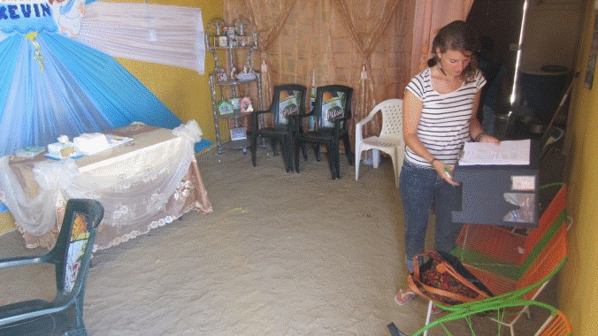 A project announcement is made to each family in the community. Members interested in the installation of a floor, or the repair of the roof can sign up with WAVES and a site survey is done of the family needs. All registered people will receive their project (in due course) and the first floors are set to be installed in early 2013.